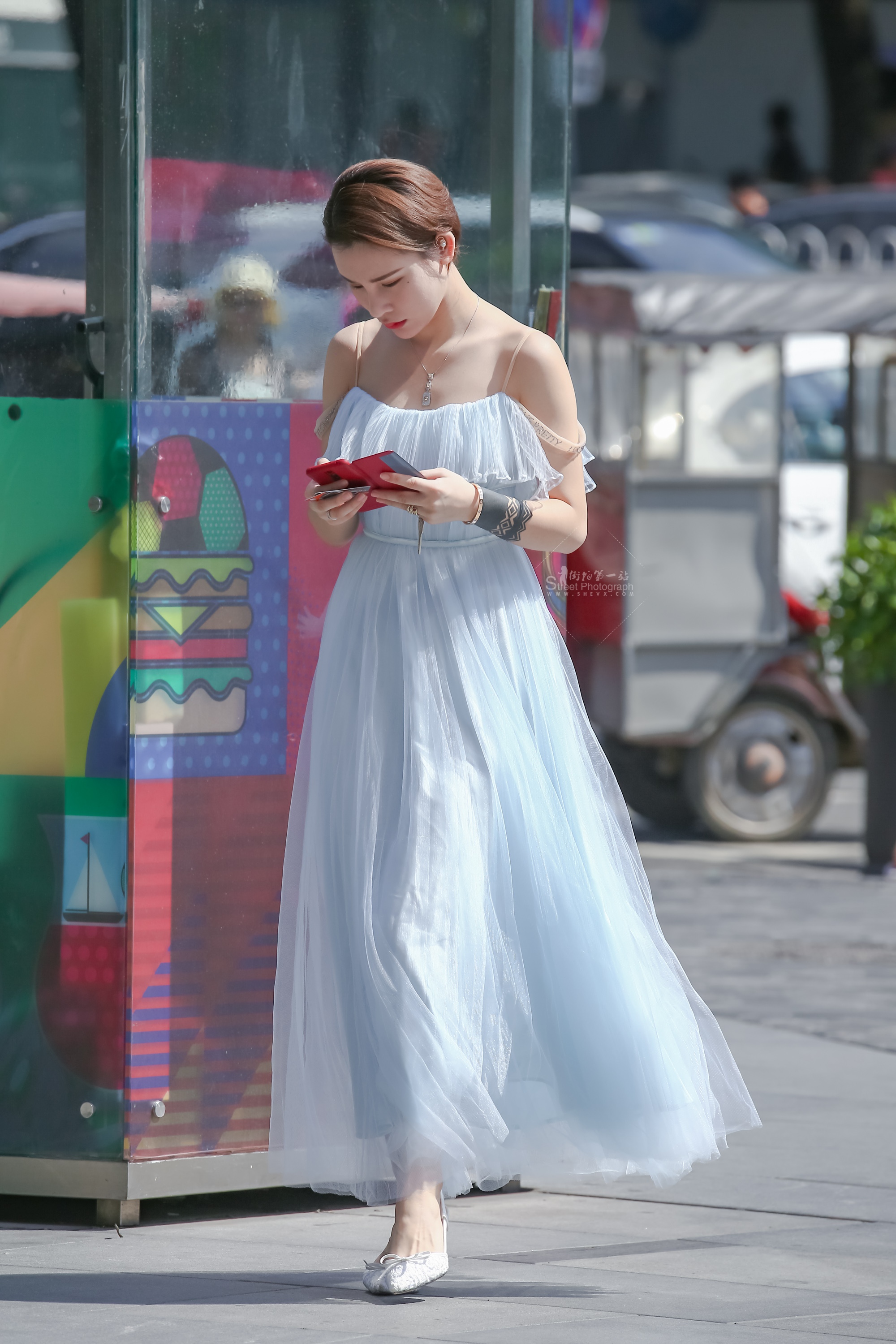 露肩的长裙高跟气质美女