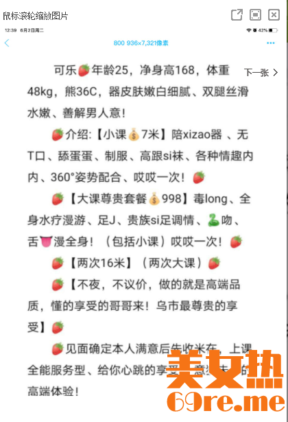 【寻欢时间】:2020年6月1日 【寻欢地点】:乌市新市区马德里春天附近 【信息来源】:狼友推荐 【服务项目】:鸳鸯浴,漫游,胸推,69式,冰火,口活,爱爱、SM(可选,勿必填写真实服务项目) 【妹妹数量】:1 ...